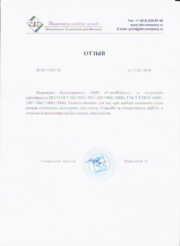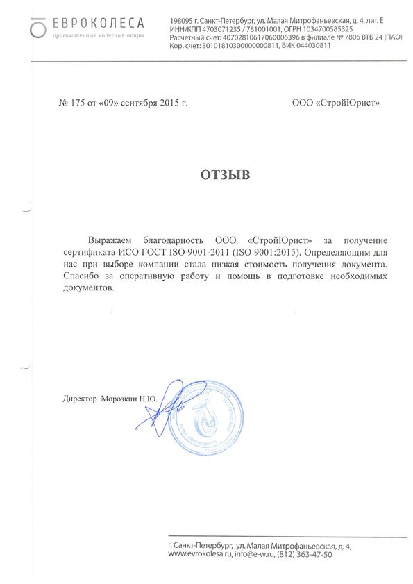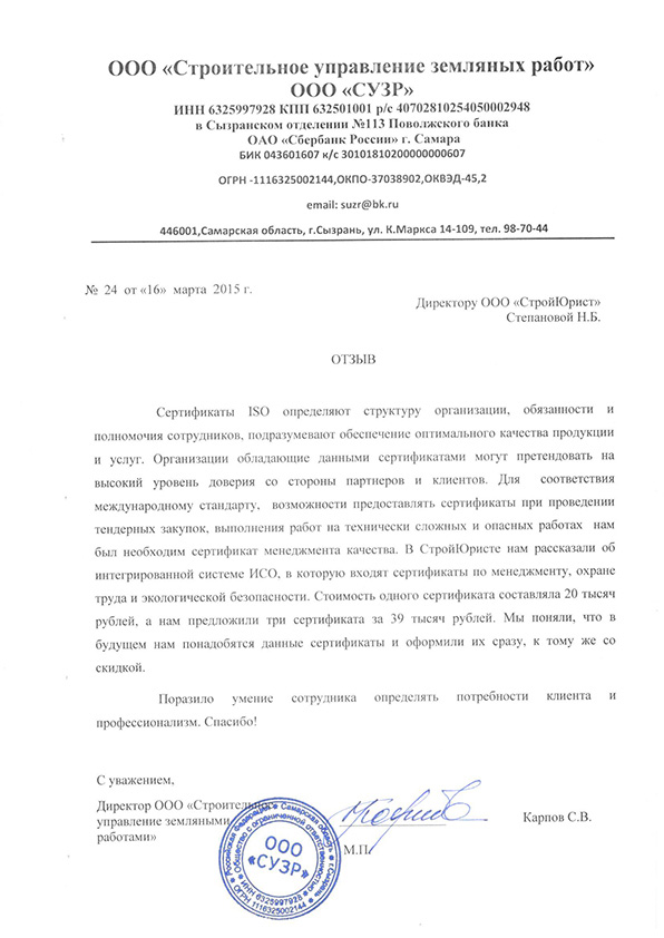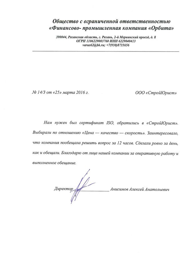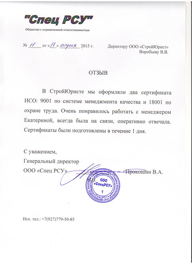 Отзывы клиентов "СтройЮрист" по ISO в Мурманске