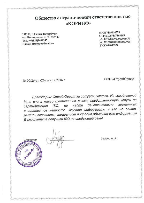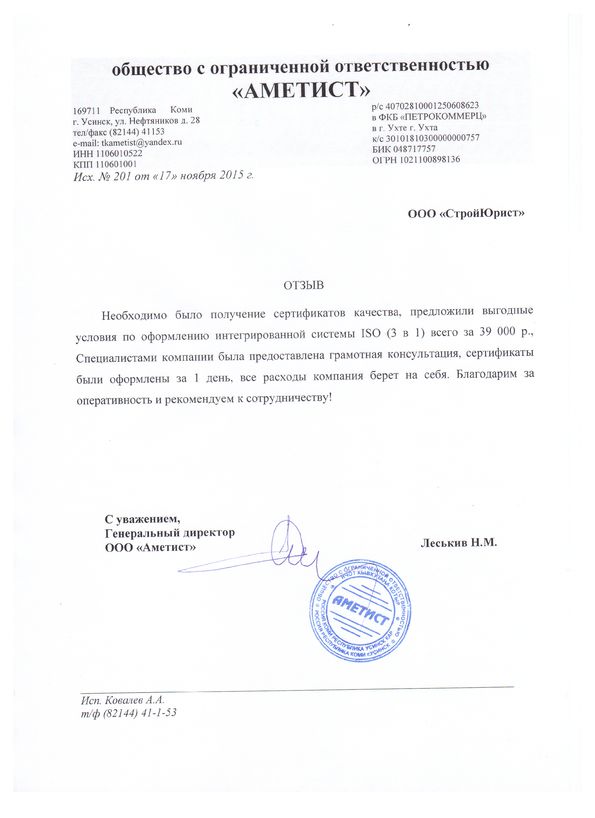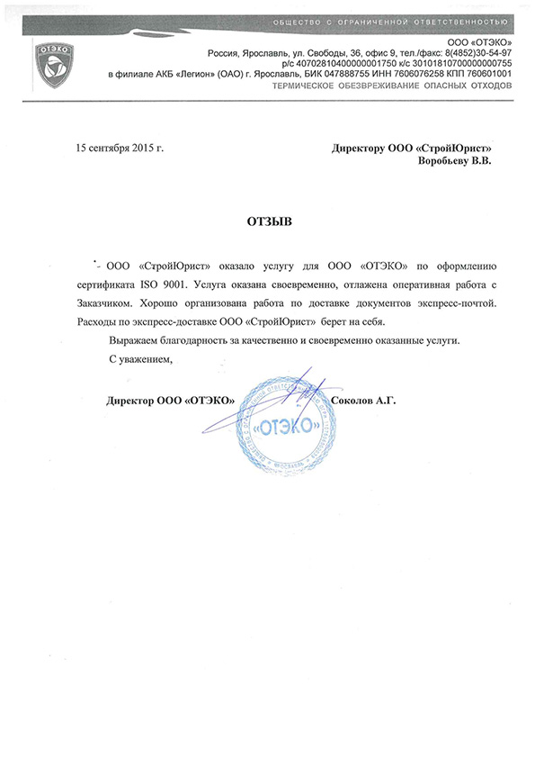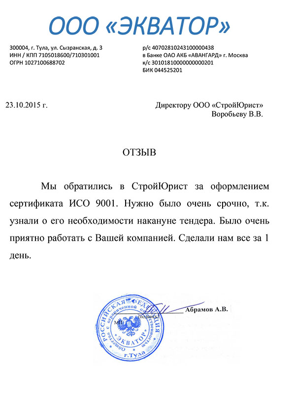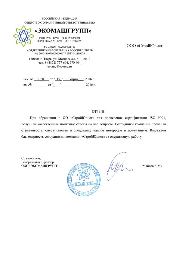 Отзывы клиентов "СтройЮрист" по ISO в Мурманске
