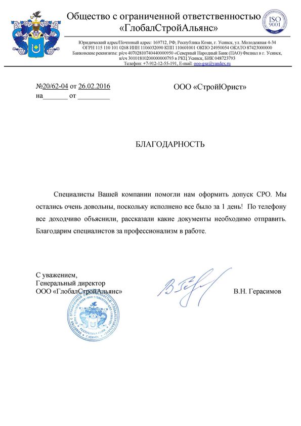 Отзывы клиентов "СтройЮрист" по вступлению в СРО в Мурманске