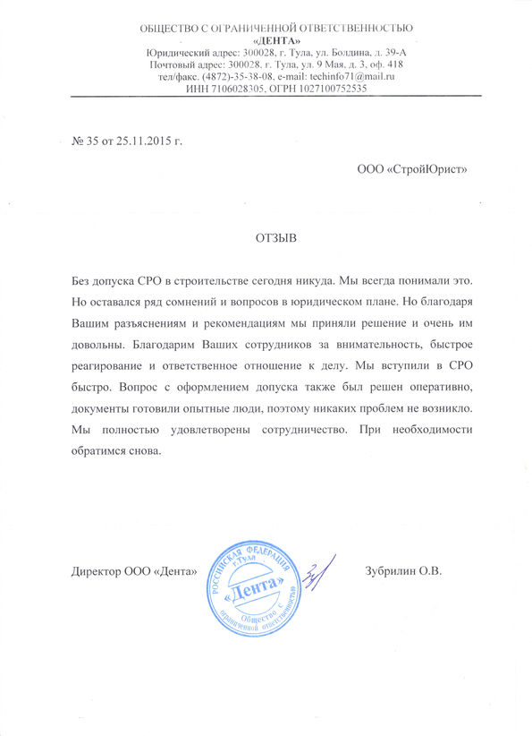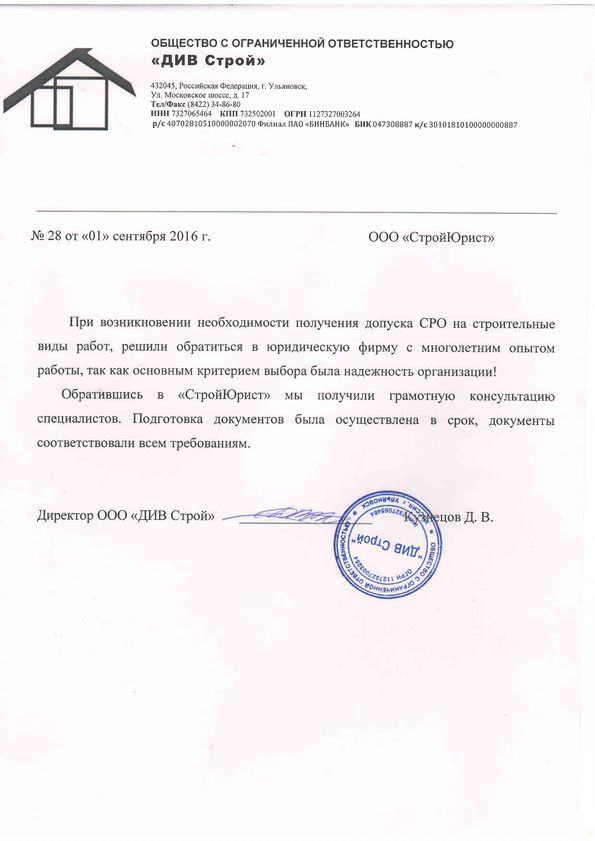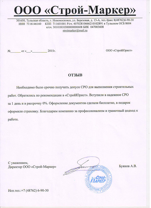 Отзывы клиентов "СтройЮрист" по вступлению в СРО в Мурманске