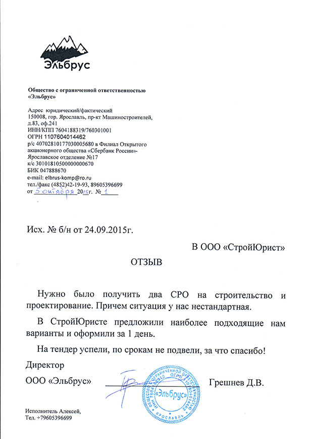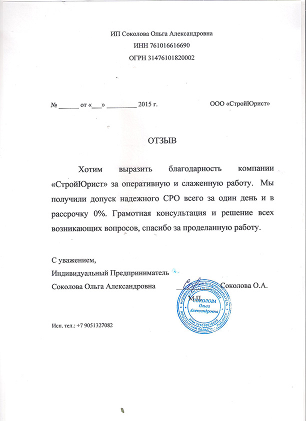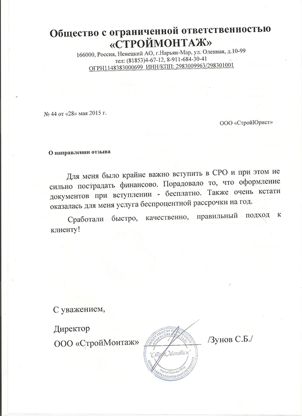 Отзывы клиентов "СтройЮрист" по вступлению в СРО в Мурманске