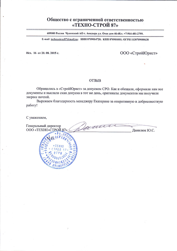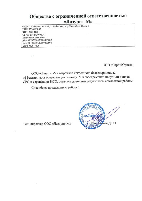 Отзывы клиентов "СтройЮрист" по вступлению в СРО в Мурманске