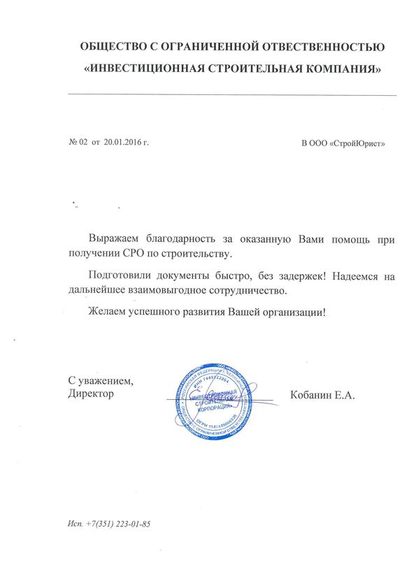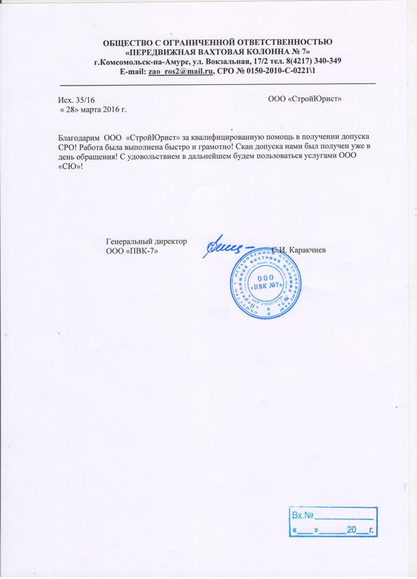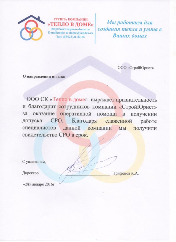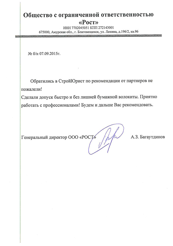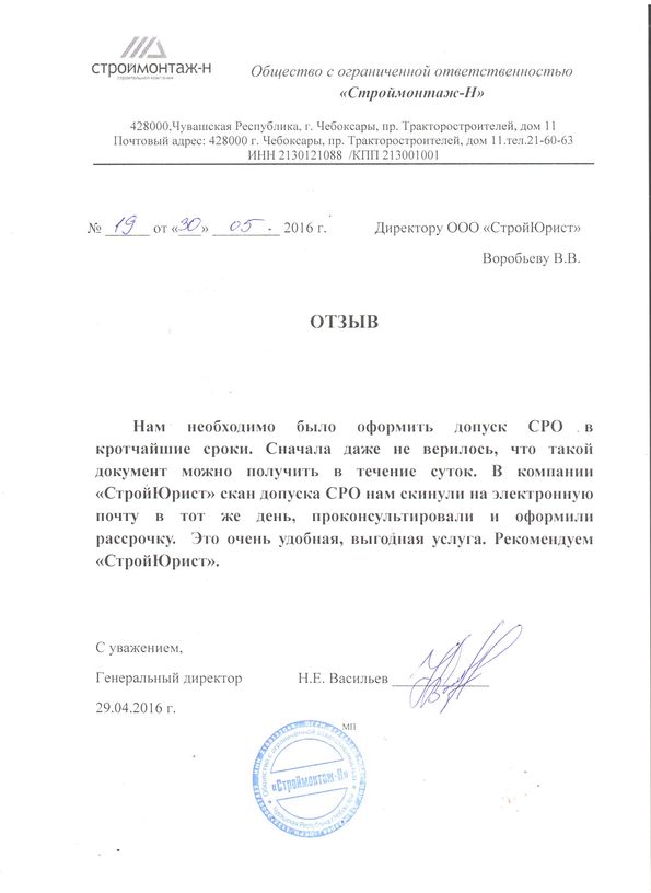 Отзывы клиентов "СтройЮрист" по вступлению в СРО в Мурманске