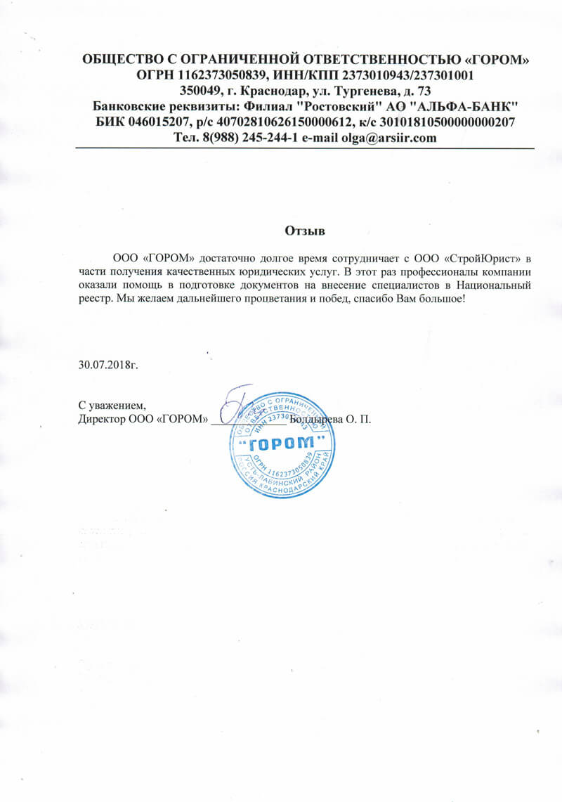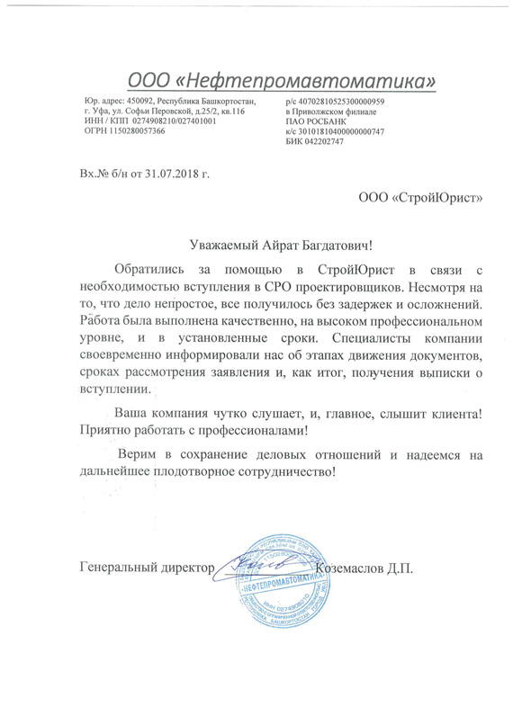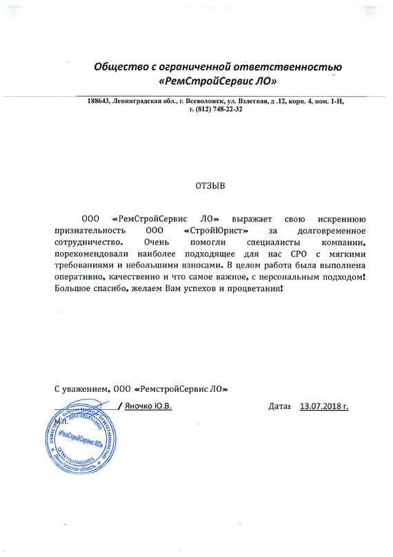 Отзывы клиентов "СтройЮрист" по вступлению в СРО в Мурманске